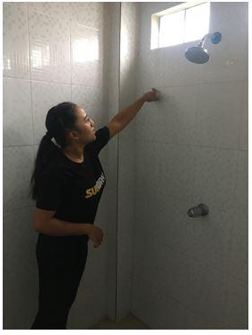 Maria Elvira García is a client of Hábitat para la Humanidad in El Salvador. She obtained a loan to renovate her shower and sanitation facilities. Having a septic tank or a dry toilet which meets the required standards means that the inspector will agree to the facilities being connected to the community’s water system.